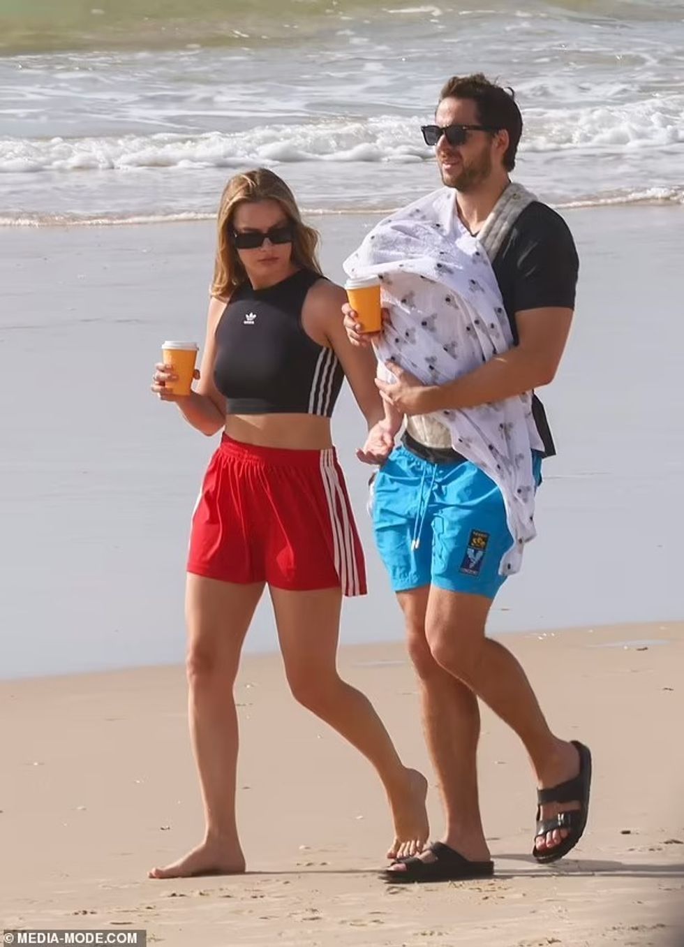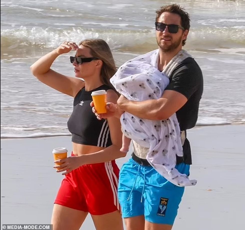 Margot Robbie u pa duke shijuar një mëngjes të qetë Pashke në plazhin e Queensland, së bashku me bashkëshortin Tom Ackerley dhe djalin e tyre të porsalindur.