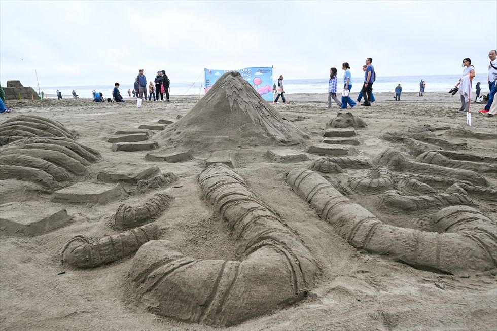 Pjesëmarrësit formuan ekipe për të ndërtuar skulptura të hollësishme rëre, duke shfaqur kreativitetin dhe punën në grup përgjatë bregut.