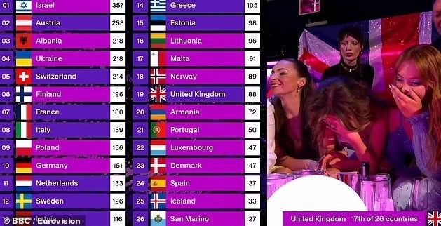 Megjithë pritshmëritë optimiste dhe performancën energjike në natën finale, edhe këtë vit Britania nuk arriti të hyjë në top 5 — për të mos thënë, as të shmangë shijen e hidhur të “nulës”.
