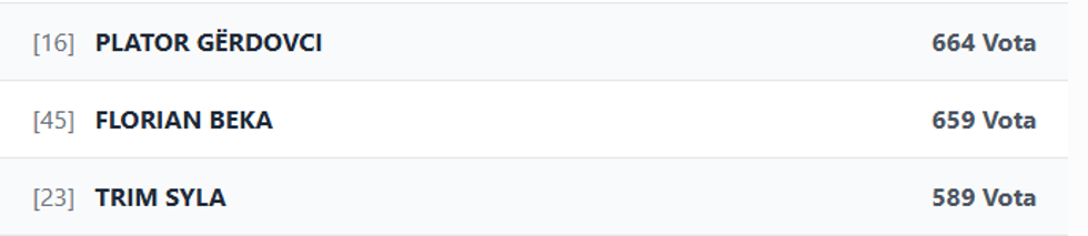 Përparim Rama si bartës i listës ka marrë plotë 28,969 vota, derisa pas tij renditen Bujar Gashi, Bekim Gashi, Milazim Vitija, Fadil Aliu, Egzon Pacolli, Sokol Havolli, Dasmor Durmishi, Etnik Mustafa dhe Shefqet Osmani në Top 10-she.