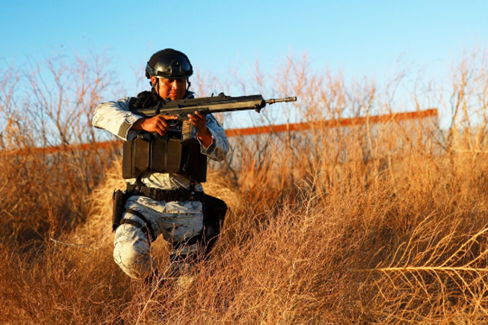 Anëtarët e maskuar dhe të armatosur të Gardës Kombëtare u panë të patrullonin pengesën kufitare në periferi të Ciudad Juarez.
