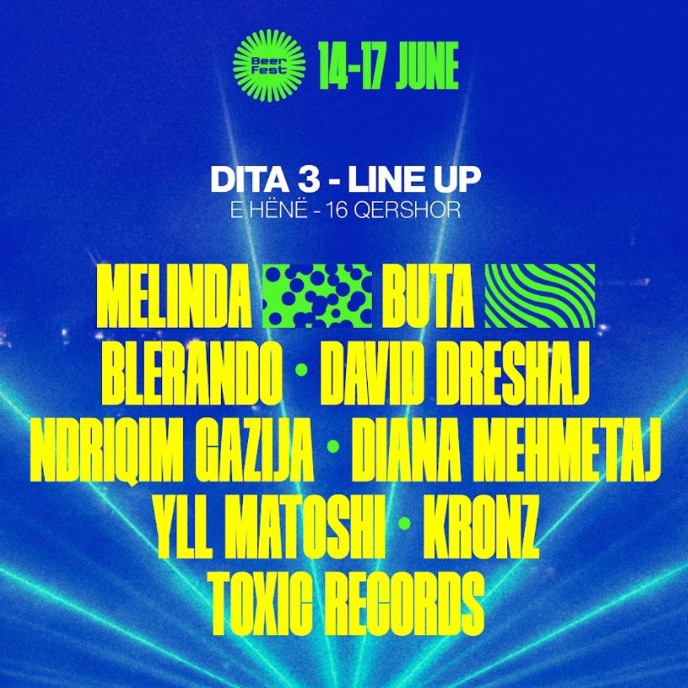 Melinda, Buta, Blerando, David Dreshaj, Ndriqim Gazija, Diana Mehmetaj, Yll Matoshi, Kronz dhe Toxic Records do të jenë yjet e natës së tretë të Beerfest Kosova 2025, duke sjellë energji, ritëm dhe performanca të paharrueshme për mijëra vizitorë që pritet ta mbushin lokacionin prapa Pallatit të Rinisë.