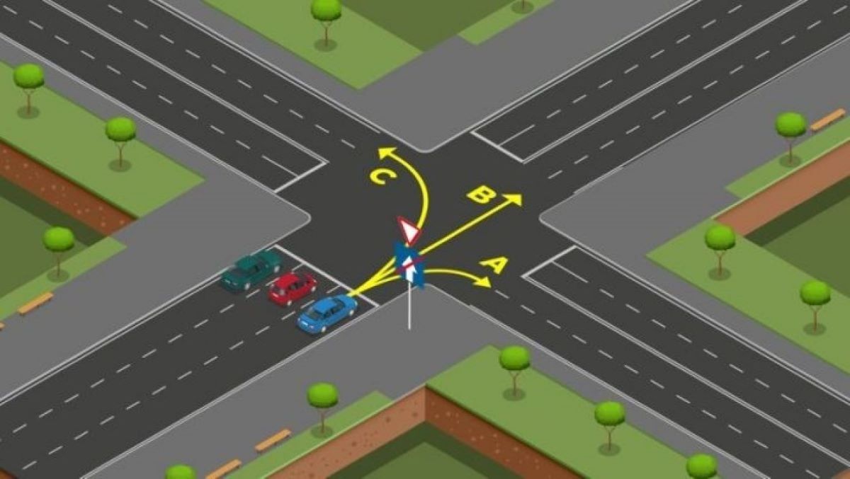Shikoni me kujdes situatën e trafikut në kryqëzim, pastaj përpiquni t'i përgjigjeni pyetjes: