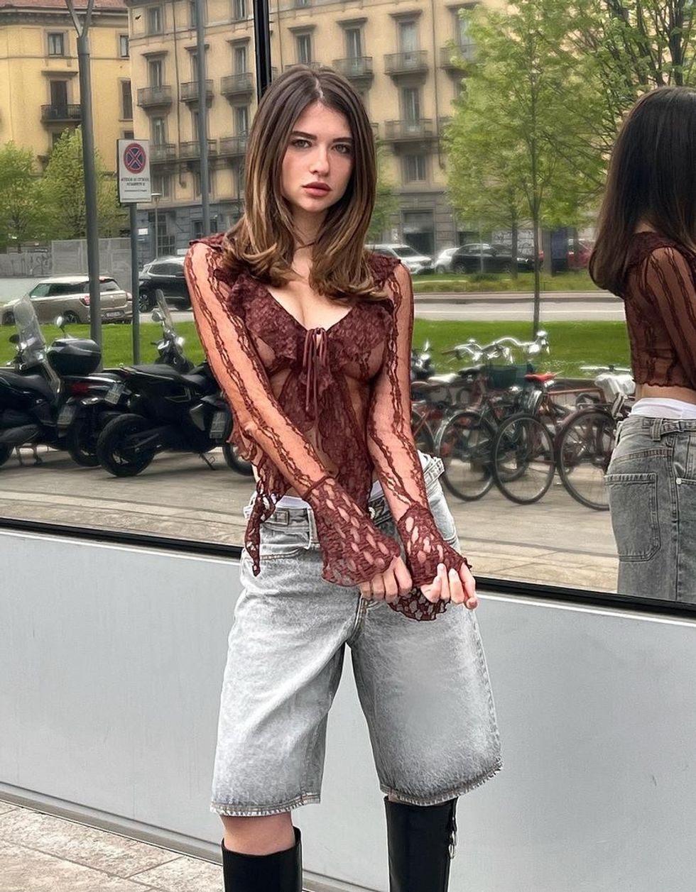 Xhinse të shkurtra të kombinuara me një këmishë mëndafshi të tejdukshme, më mëngë të gjata apo me prerje moderne në supe, ky është një stil që ka pushtuar rrjetet sociale dhe rrugët e qyteteve këtë verë. Mëngët në formë zileje, detajet romantike dhe materialet lehtësisht të tejdukshme e bëjnë këtë kombinim tërheqës dhe funksional.