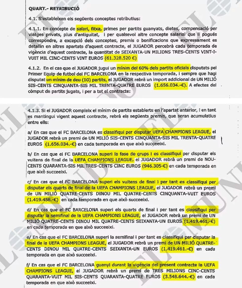 Në vitin 2021, kontrata që ai kishte nënshkruar në ‘Camp Nou’ katër vite më parë u zbulua nga mediumi spanjoll El Mundo, dhe shuma që u përfshi aty ishte padyshim kontrata më luksoze në histori të sporteve.