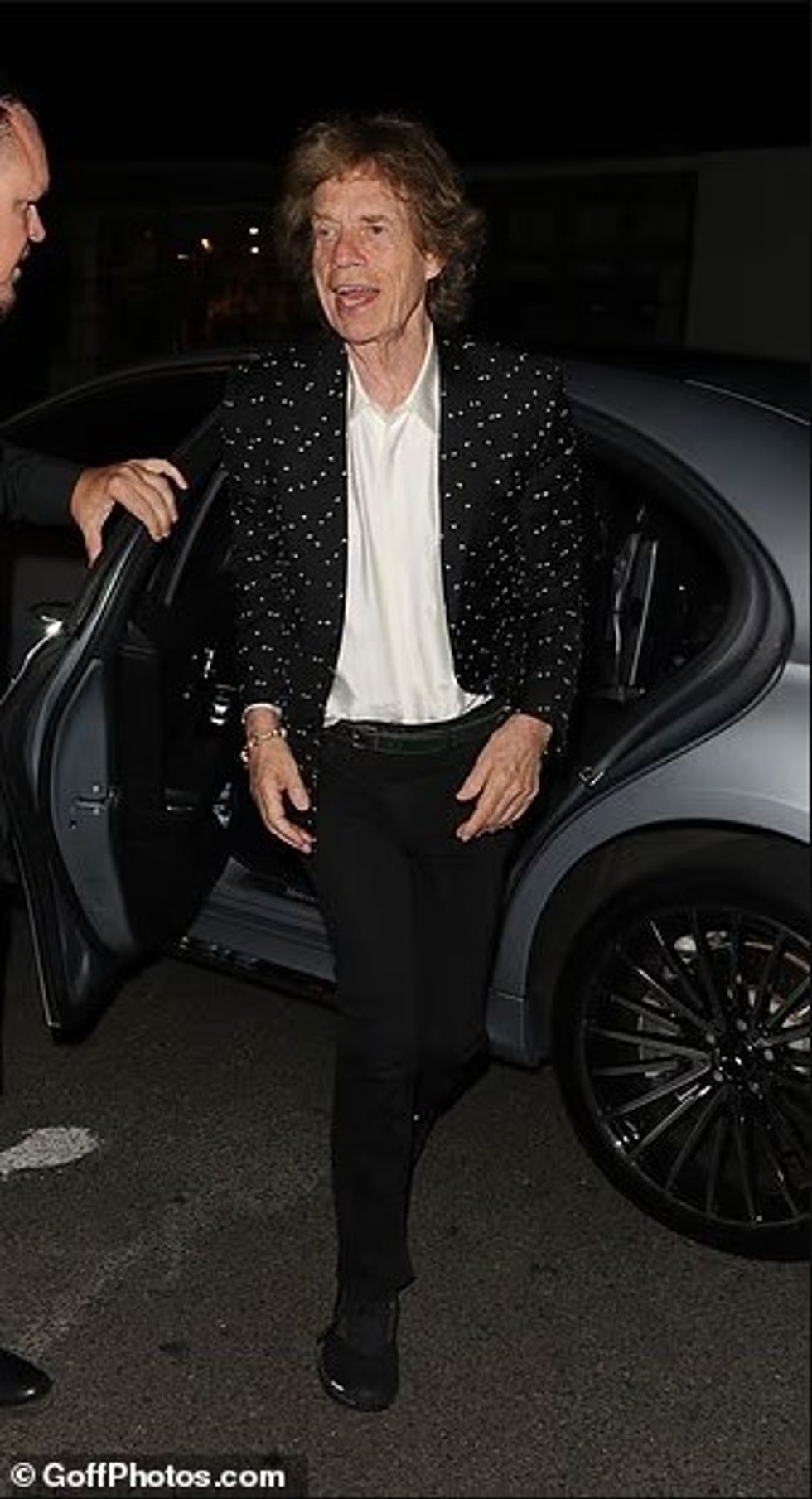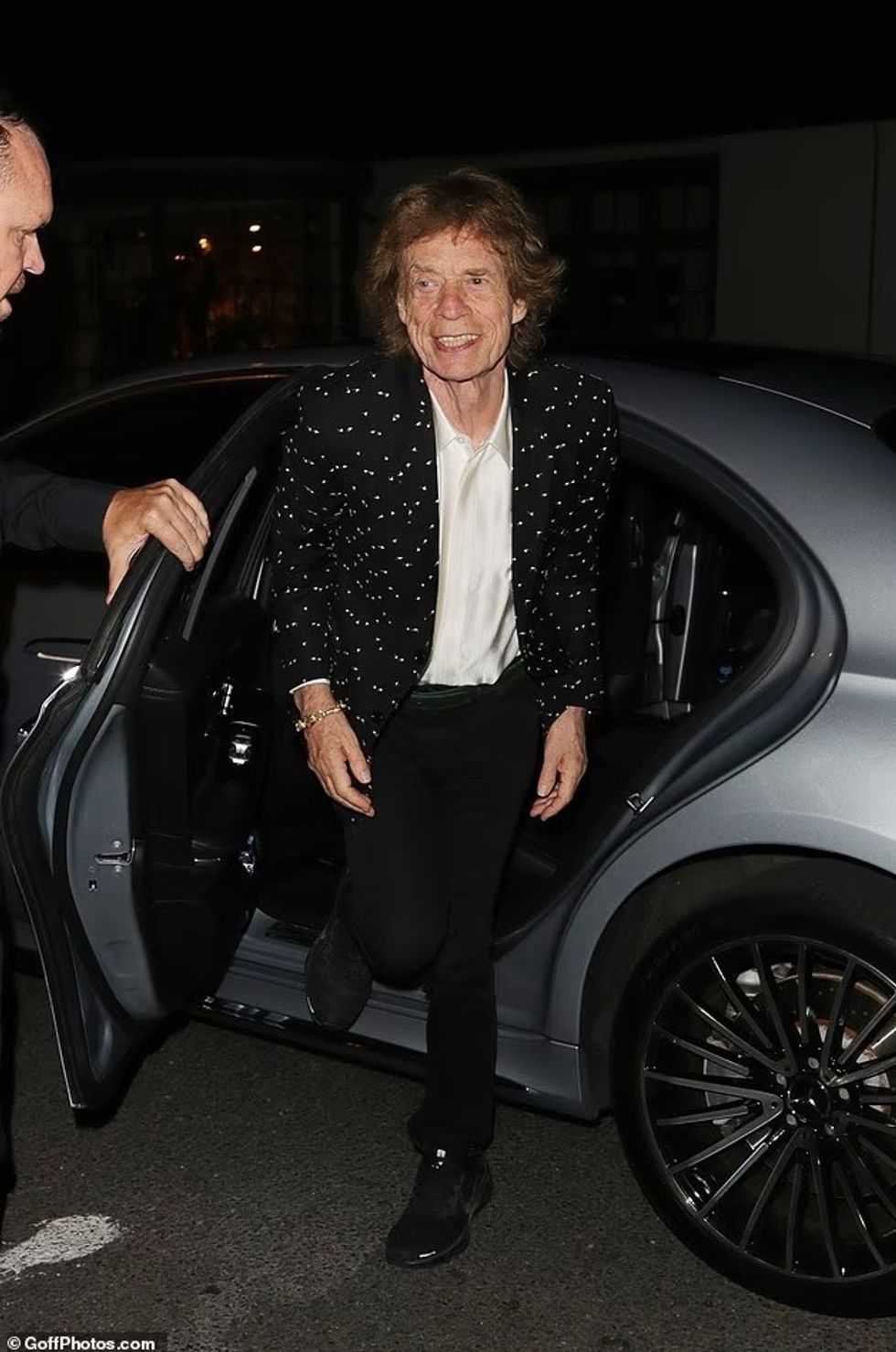 Me stilin që e karakterizon, frontmeni i Rolling Stones u shfaq me një këmishë mëndafshi të bardhë, pantallona të zeza elegante dhe një xhaketë me detaje të rafinuara, shkruan DailyMail.