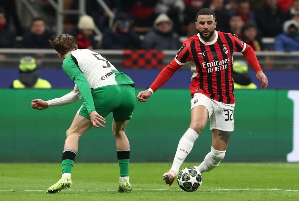216:"AC Milan's Kyle Walker during the Italy Cup Frecciarossa soccer match between Ac Milan and Roma at San Siro Stadium in Milan , North Italy - Wednesday, February 5 , 2025 . Sport - Soccer . (Photo by Spada/LaPresse) 14:"Spada/LaPresse