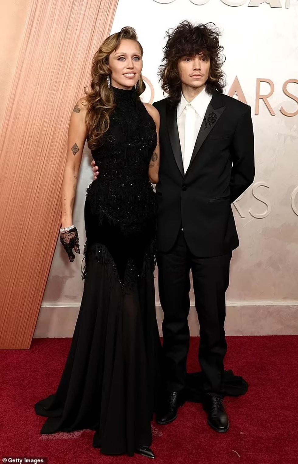 Miley ishte e shoqëruar nga i dashuri i saj, bateristi 26-vjeçar Maxx Morando, i cili ishte veshur në të zezë për t'u kombinuar me të.