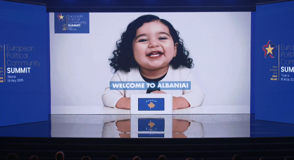 Në fund të videos prezantuese, e realizuar me inteligjencë artificiale, u shfaqën 47 liderët evropianë të portretizuar si fëmijë, duke thënë: “Mirë se vini në Shqipëri”.