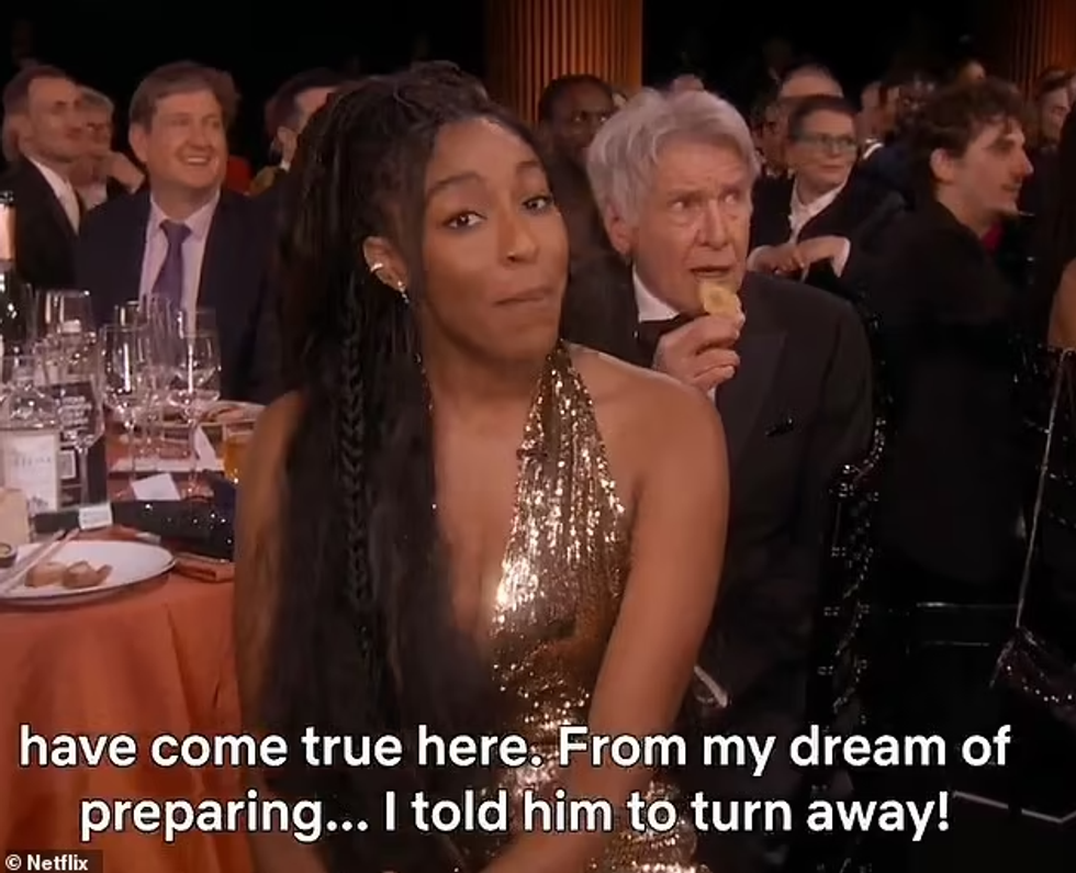 Një nga çastet më të komentuara ishte ai i Harrison Ford, i cili, pa e kuptuar, vodhi vëmendjen gjatë monologut të koleges së tij Jessica Williams.