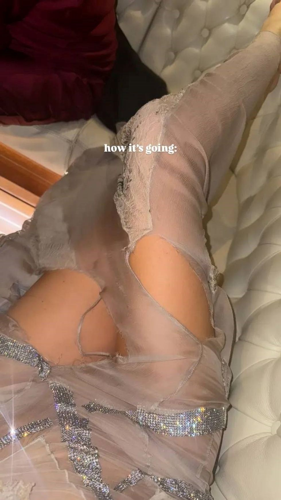 Ceretti kishte zgjedhur një fustan vintage nga Dolce & Gabbana për mbrëmjen festive të së shtunës, por duket se festa ishte aq energjike, saqë fustani nuk i përballoi lëvizjet. Në një postim në InstaStory, ajo ndau dy fotografi në formatin “si filloi vs. si po shkon”, ku shihej se një grisje e vogël në fustan ishte kthyer në një çarje të madhe dhe të dukshme.