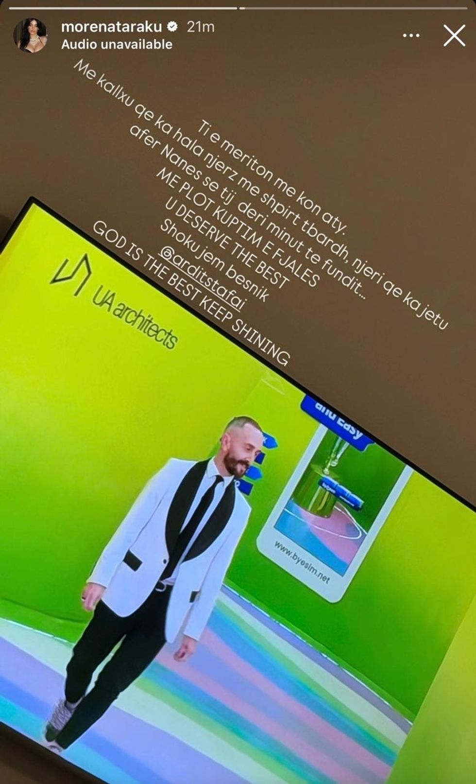 “Ti e meriton me qenë aty. Me tregu që ka akoma njerëz me shpirt të madh, njeri që ka jetuar afër nënës së tij deri në minutë të fundit”, ka shkruar Morena.