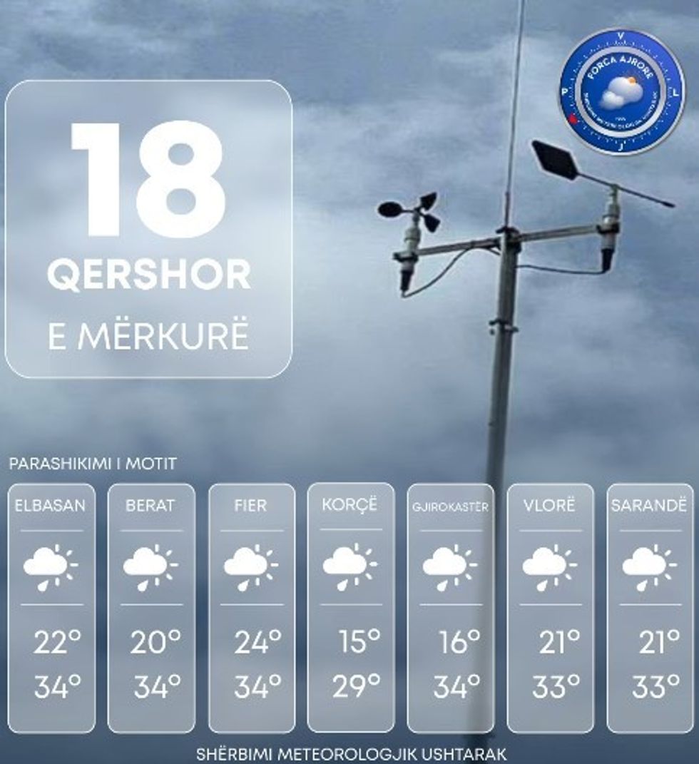Shërbimi Meteorologjik Ushtarak bën të ditur se Shqipëria të mërkurën do të jetë në ndikimin e kushteve atmosferike relativisht të paqëndrueshme.