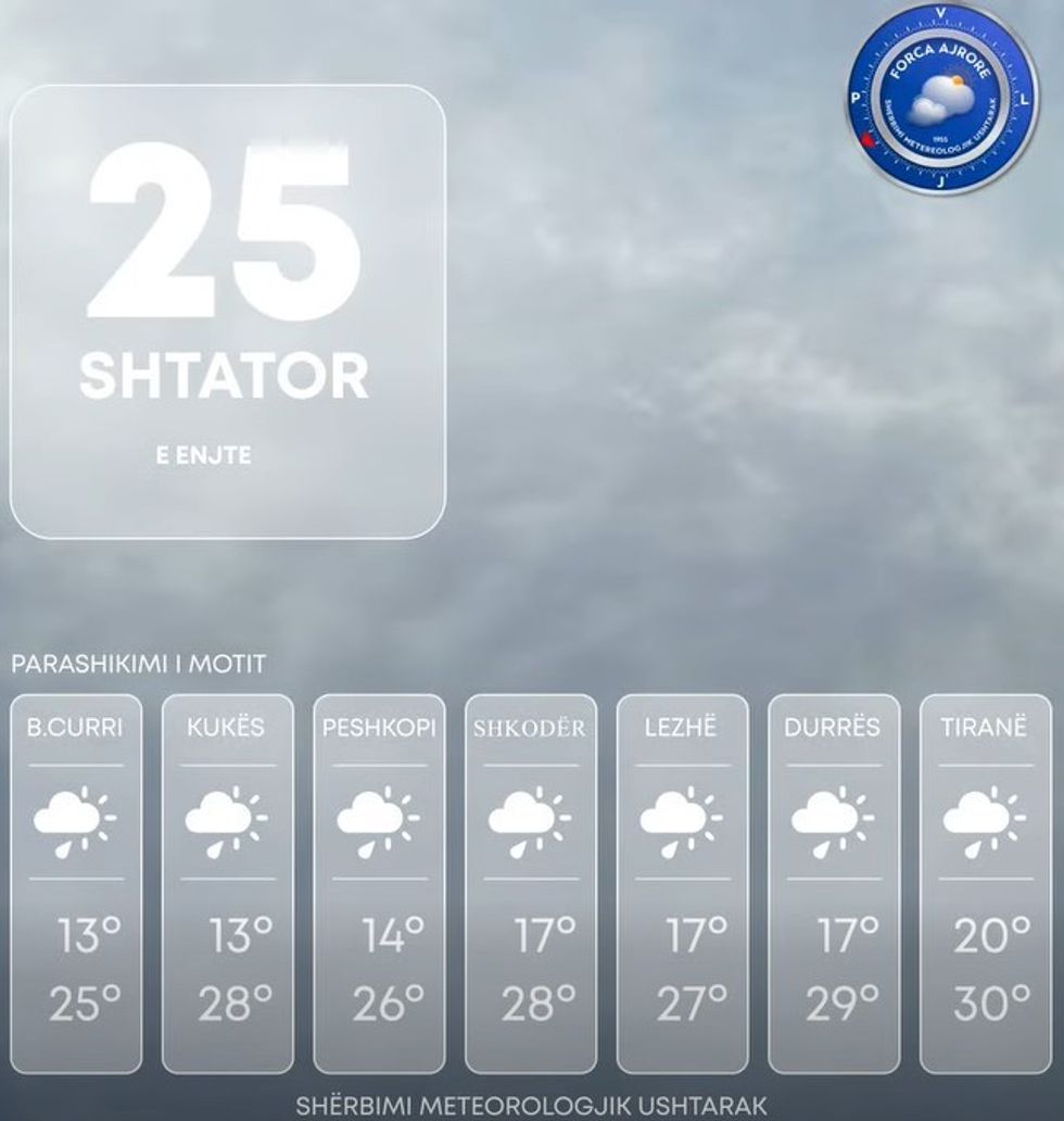 Mot i paqëndrueshëm në Shqipëri, reshje shiu të herëpashershme