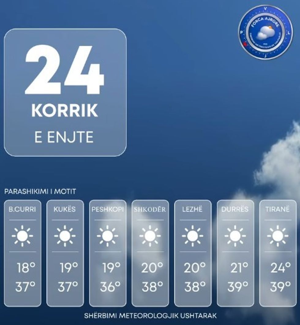 Temperaturat minimale do të jenë nga 18 deri në 24 gradë Celsius, ndërkaq ato maksimalet do të lëvizin ndërmjet 36 dhe 41 gradë.