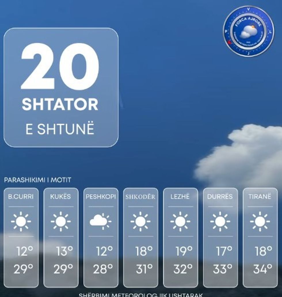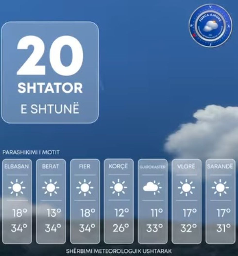 Shqipëria të shtunën do të ndikohet nga kushte atmosferike të qëndrueshme.