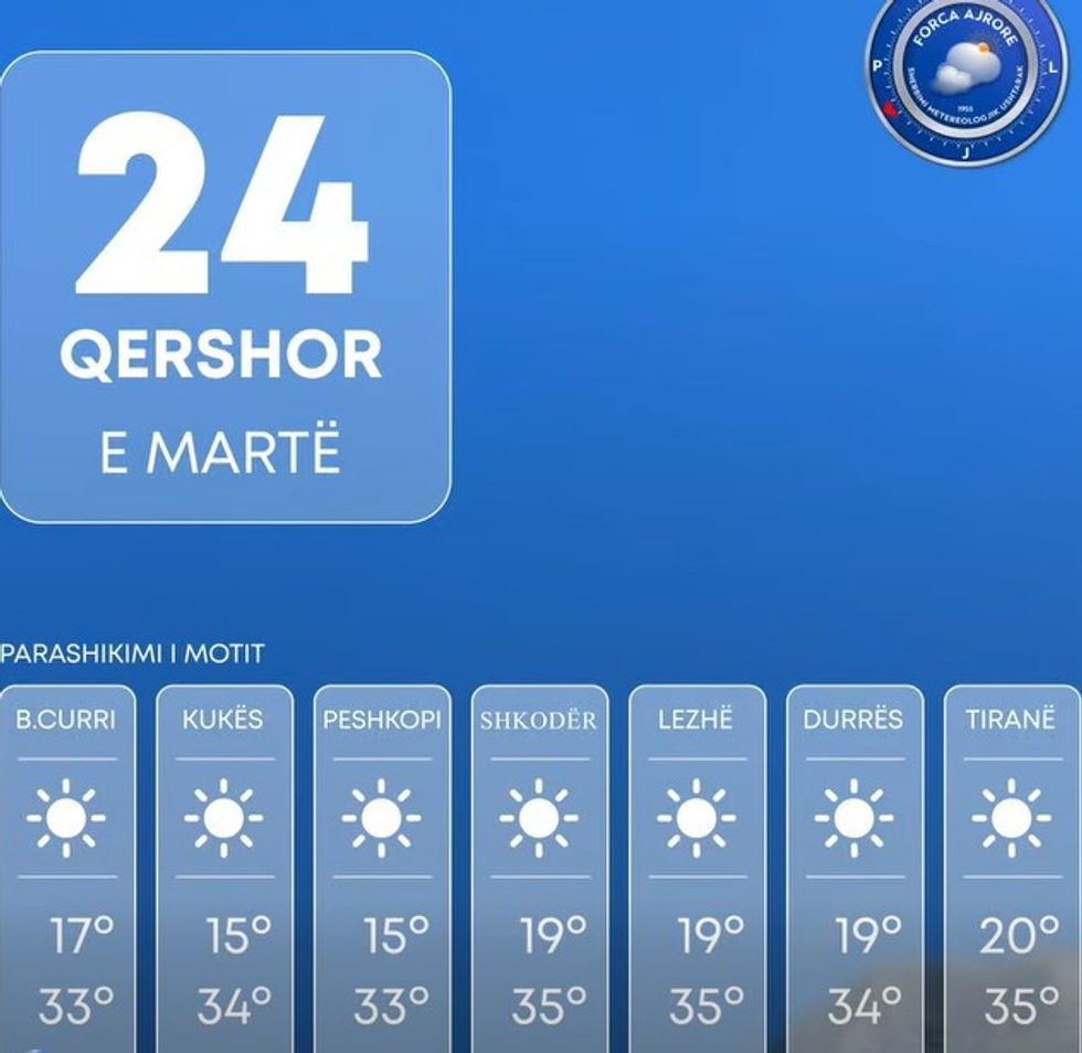 Shërbimi Meteorologjik Ushtarak bën të ditur se moti parashikohet i kthjellët në të gjithë territorin.