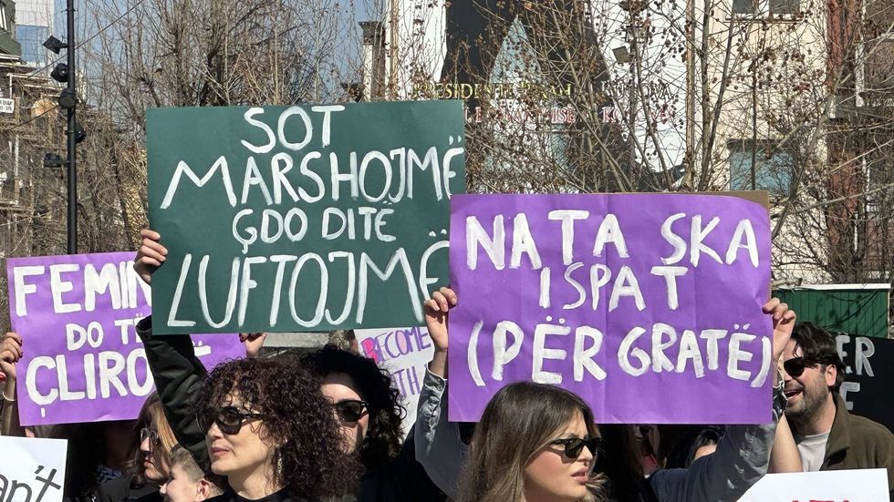 Dhjetëra gra, në mes tyre edhe disa burra me pankarta në duar kanë filluar ecjen e tyre, duke kërkuar liri dhe barazi për të drejtat e grave.