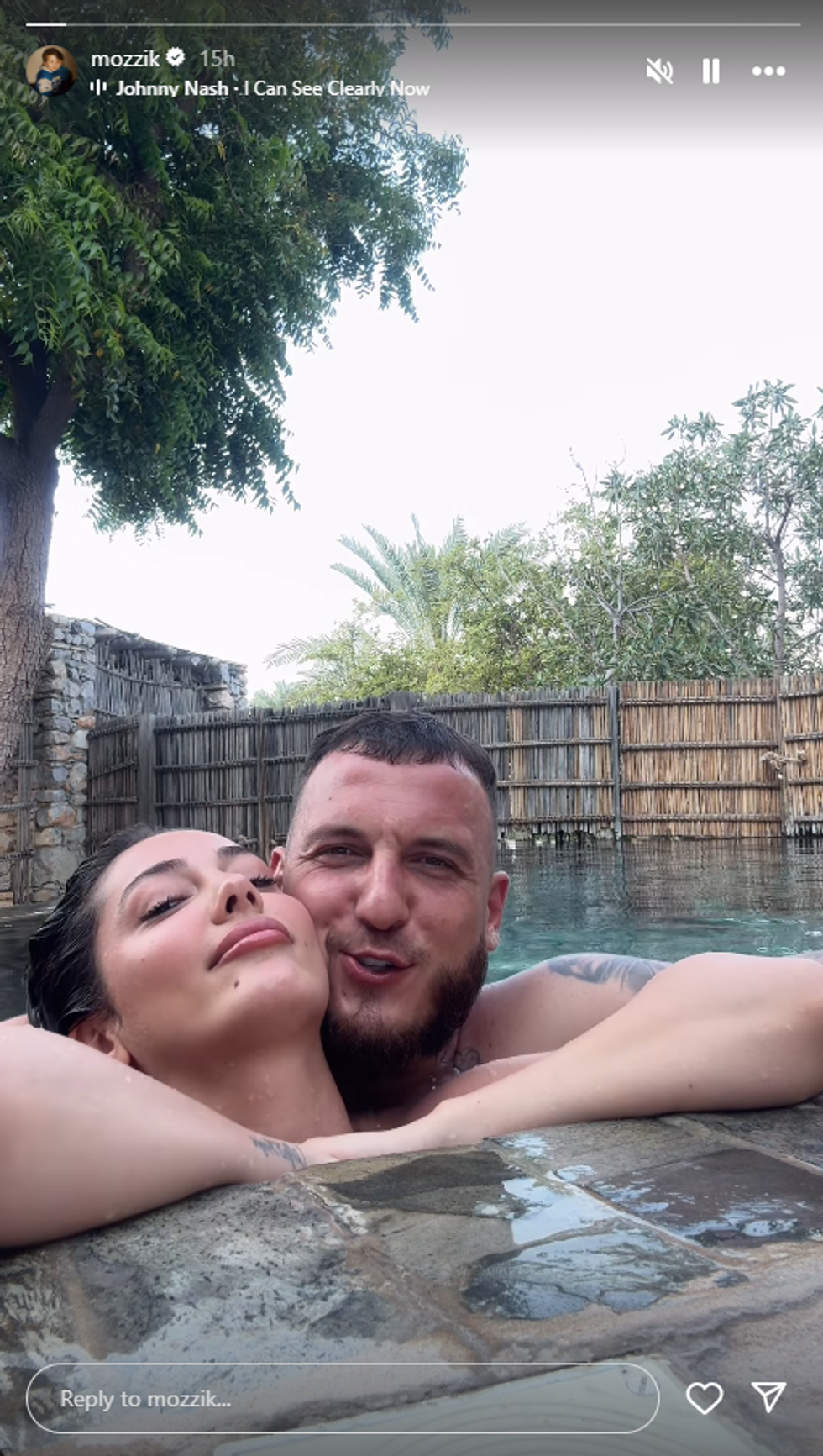 Kohët e fundit, Mozzik ndau me ndjekësit e tij një video romantike nga pushimet, ku shihet duke u larë në pishinë së bashku me Lotinën, të përqafuar fort, në një moment të ngrohtë që flet më shumë se fjalët.