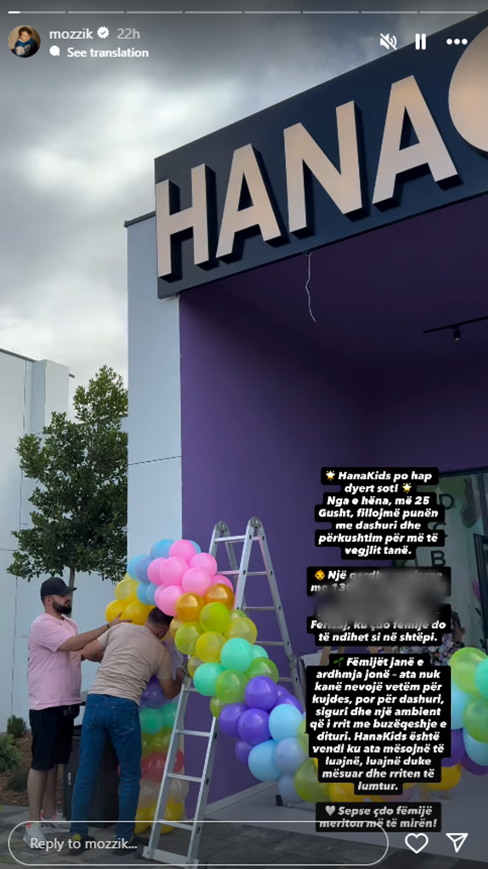 Rap-artisti i njohur shqiptar, Mozzik, ka hapur një çerdhe në qytetin e tij të lindjes - Ferizaj.