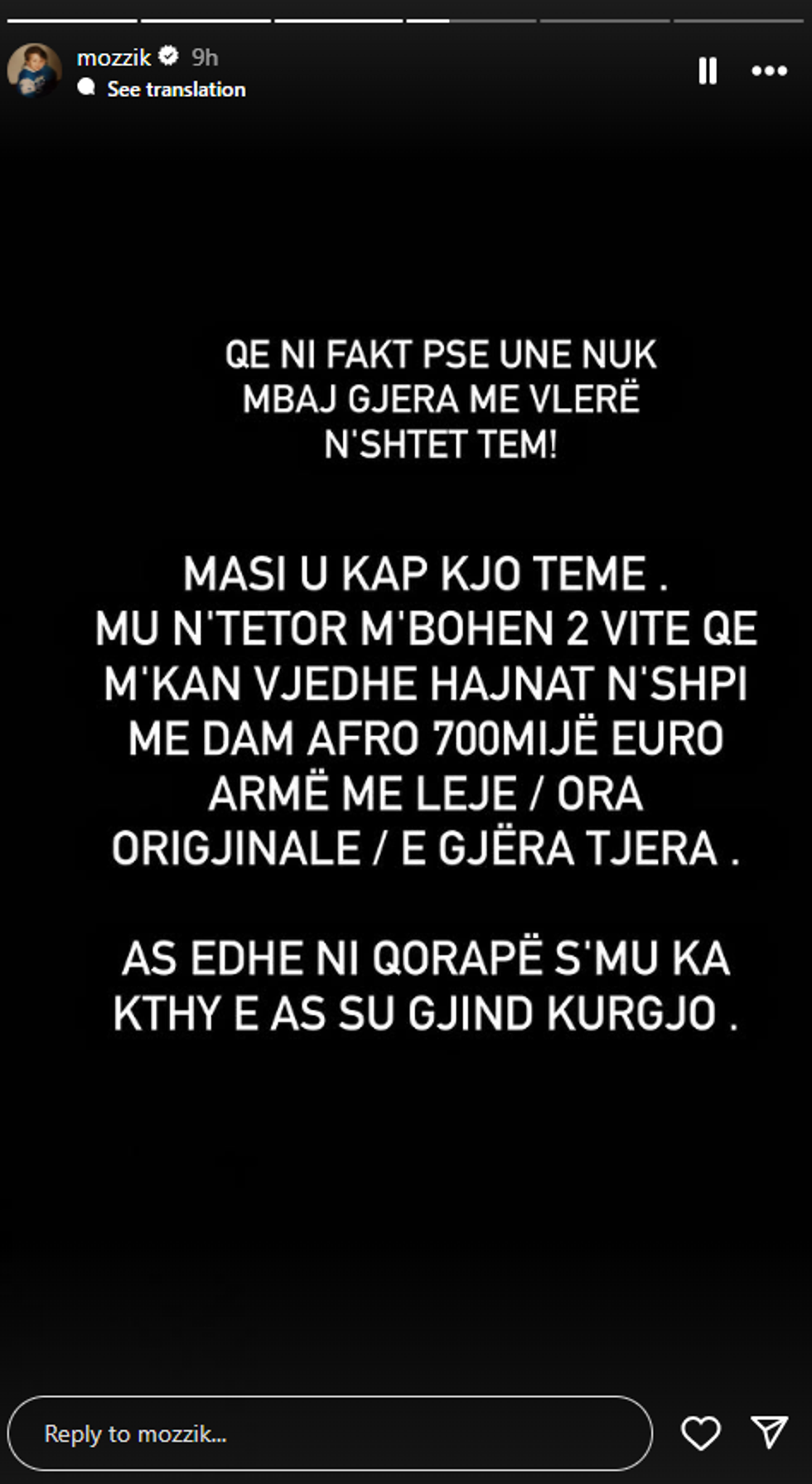 Pas postimeve të shumta që bëri mbrëmë, reperi i njohur Mozzik ka reaguar sërish në rrjete sociale.