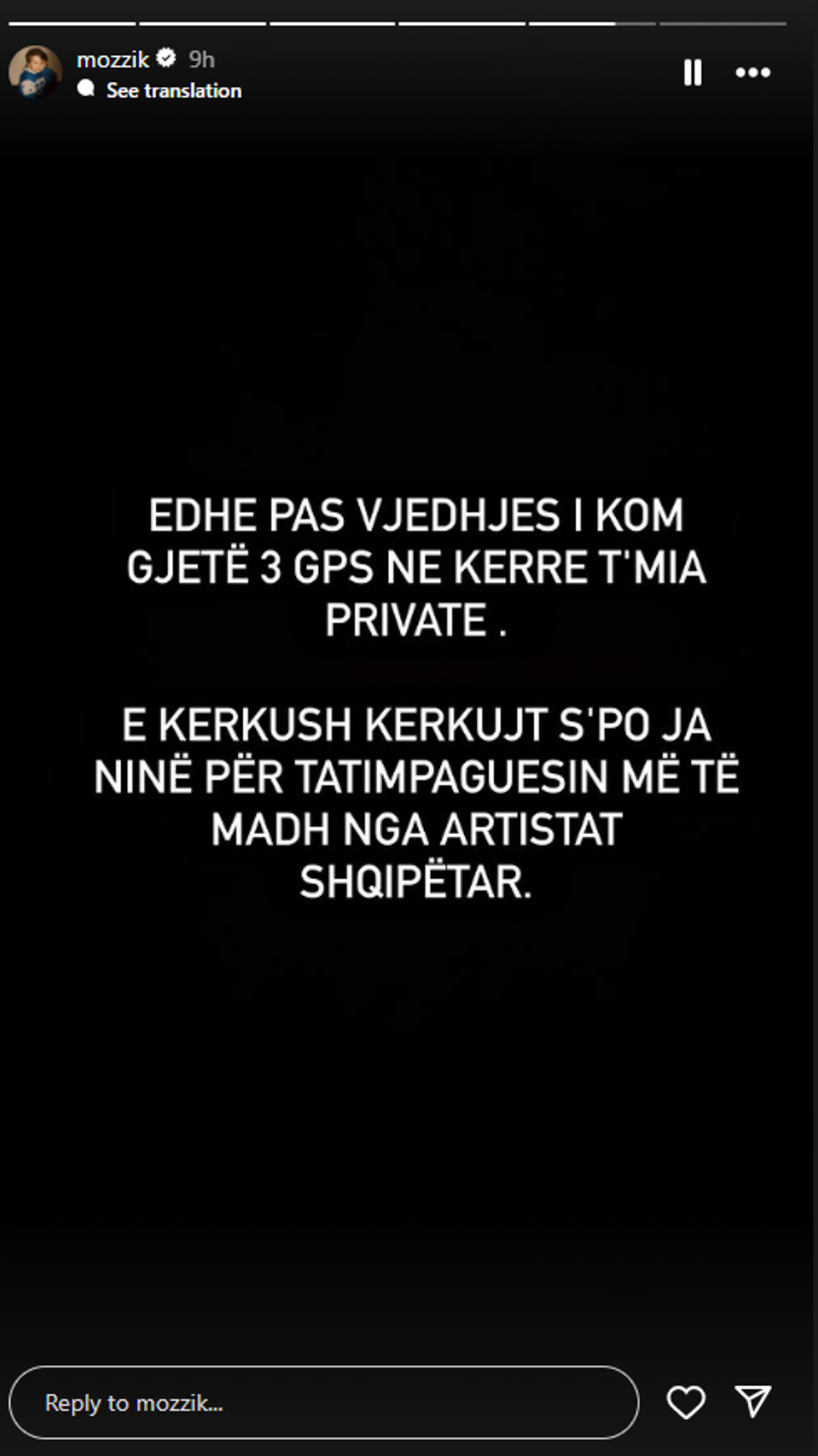 Tutje tha: “Edhe pas vjedhjes i kam gjetur 3 GPS në makina të miat private. E askush askujt s’po ia ndjen për tatimpaguesin më të madh nga artistët shqiptarë. M’keni zhgënjyer po keni dalur bllof”.