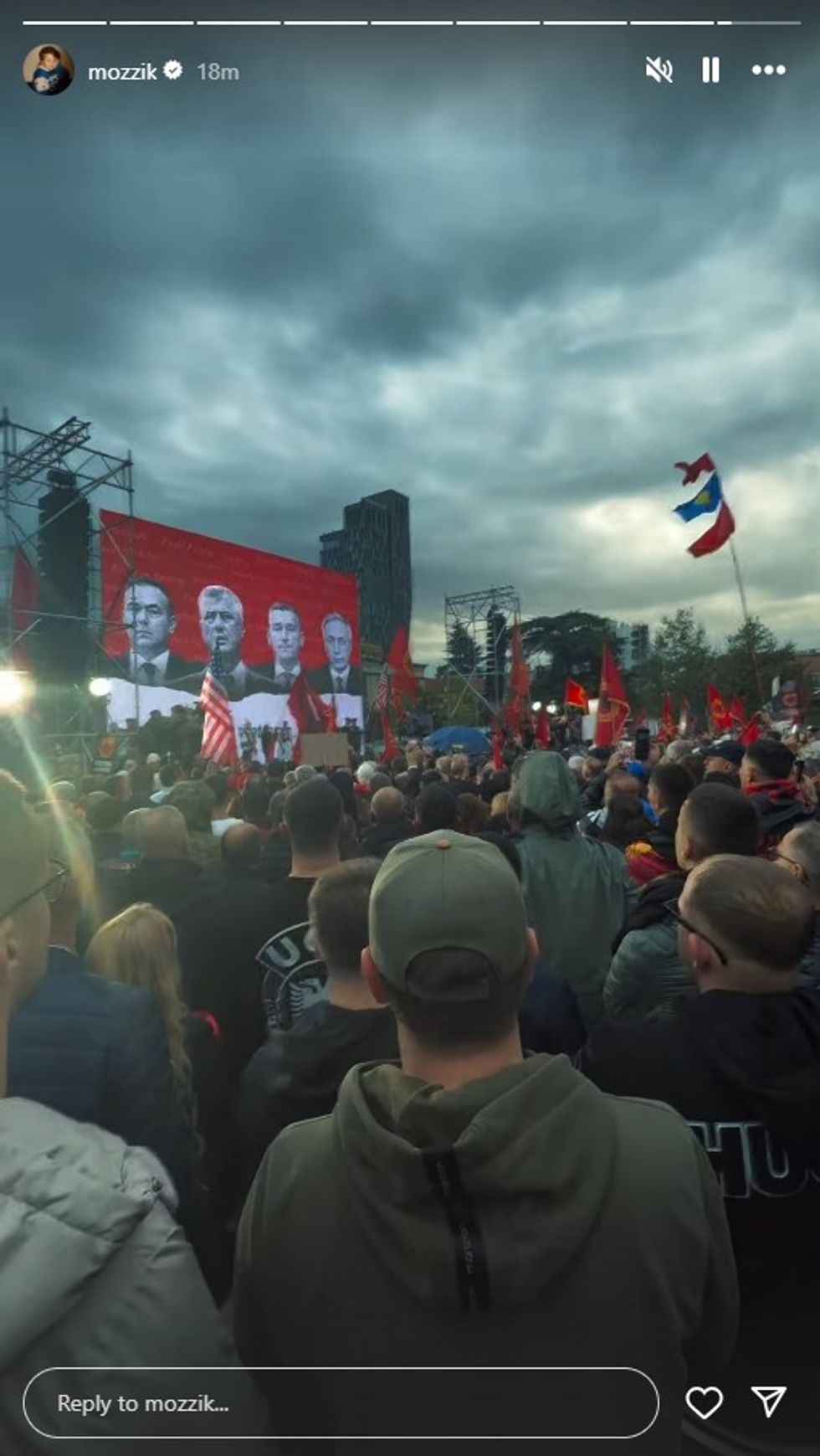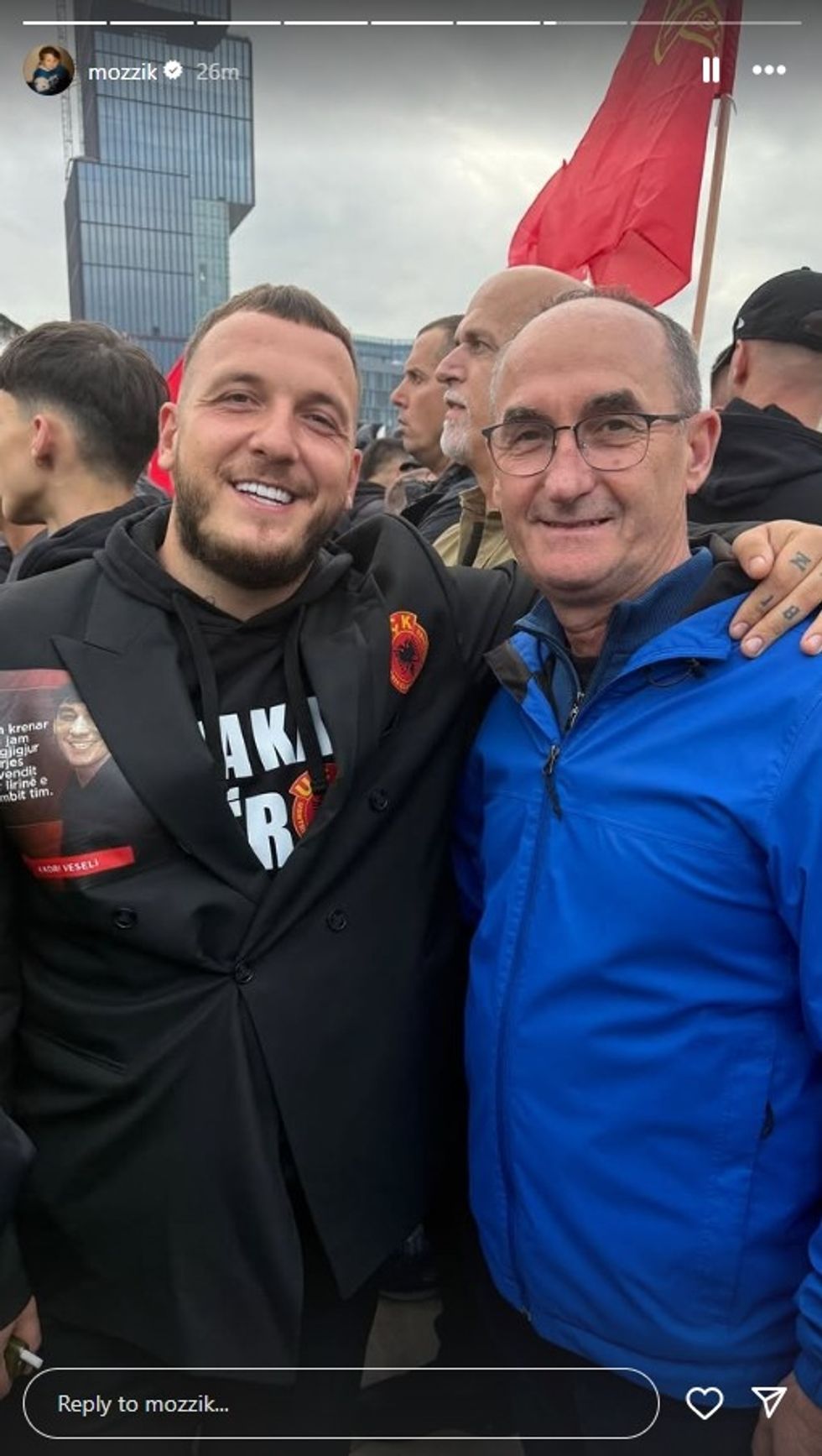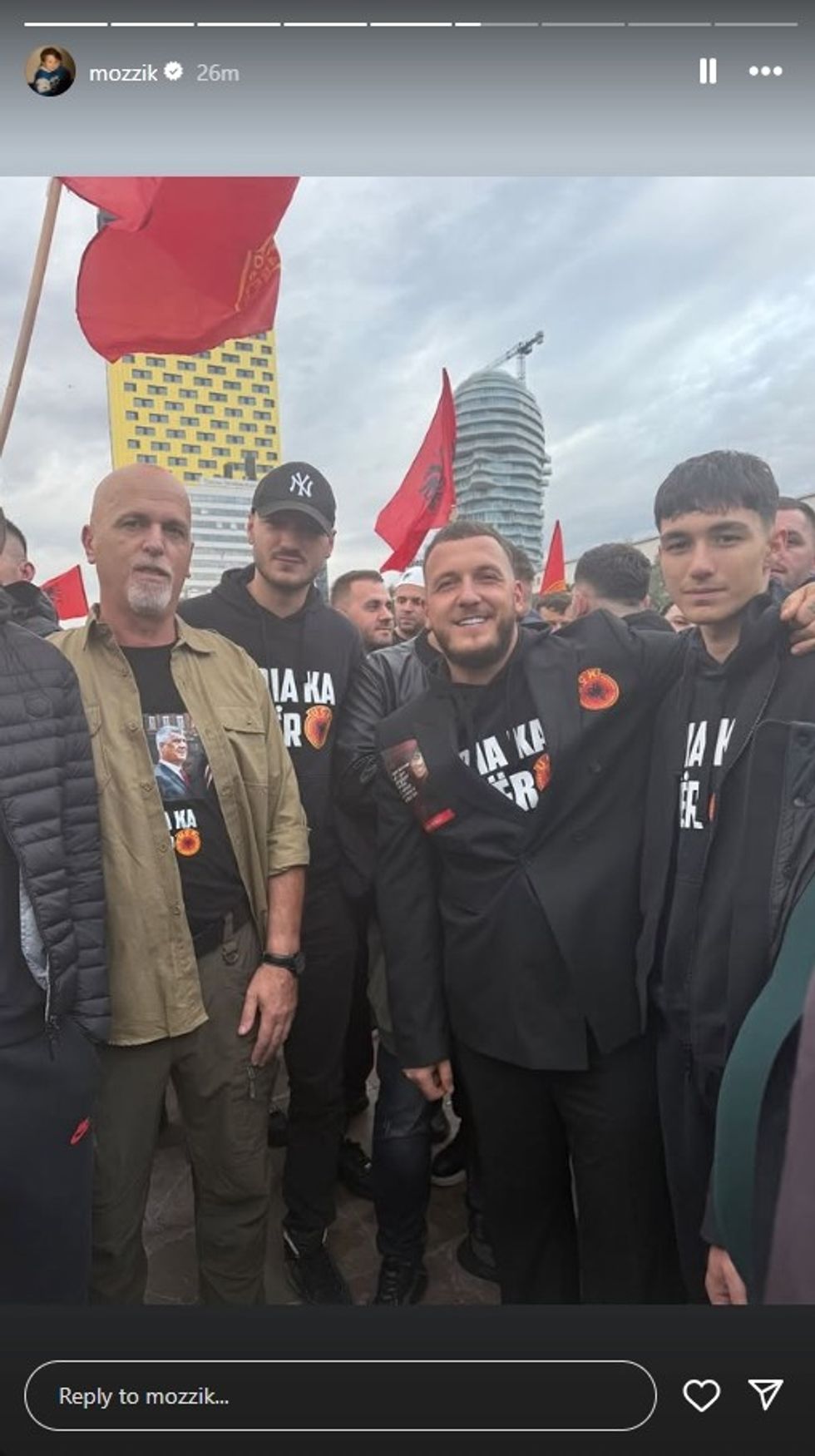 Reperi i njohur nga Ferizaj, Mozzik, ishte i pranishëm sot në protestën madhështore të zhvilluar në sheshin "Skënderbej" në Tiranë, në mbështetje të krerëve të Ushtrisë Çlirimtare të Kosovës, të cilët po gjykohen në Hagë për akuza të pretenduara për krime lufte.
