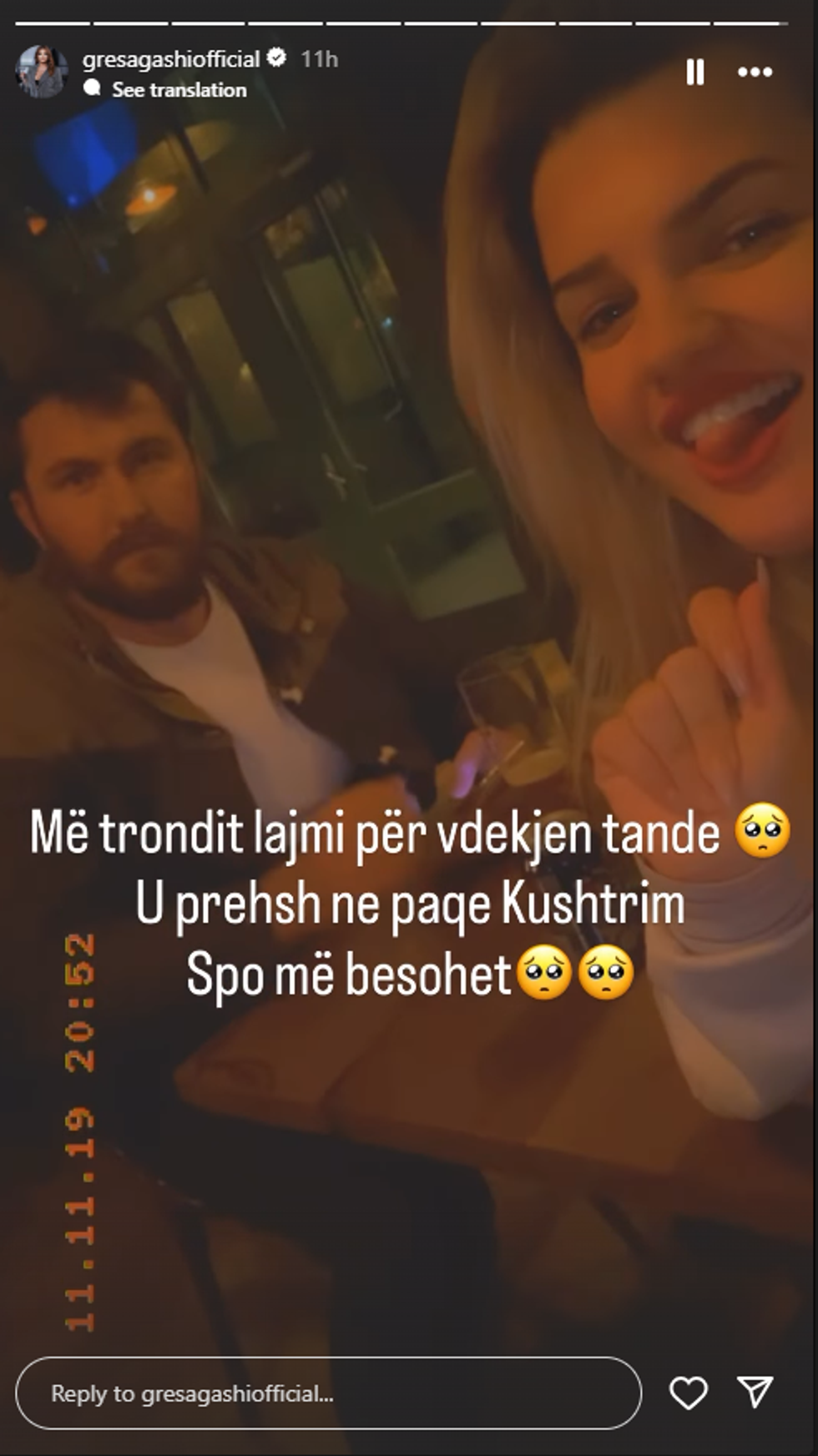 Një reagim për artistin e ka bërë edhe aktorja e ish-banorja e Big Brother VIP Kosova, Gresa Gashi.