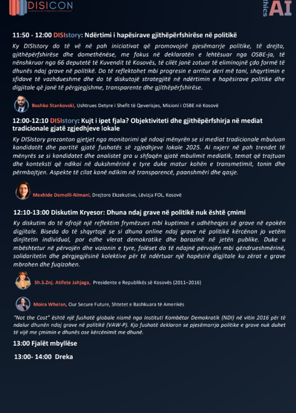 Ky edicion do të përqendrohet në mësimet nga zgjedhjet e vitit 2025 në Kosovë, duke shqyrtuar ndikimin e dezinformatave me bazë gjinore dhe dhunës online ndaj grave në politikë.