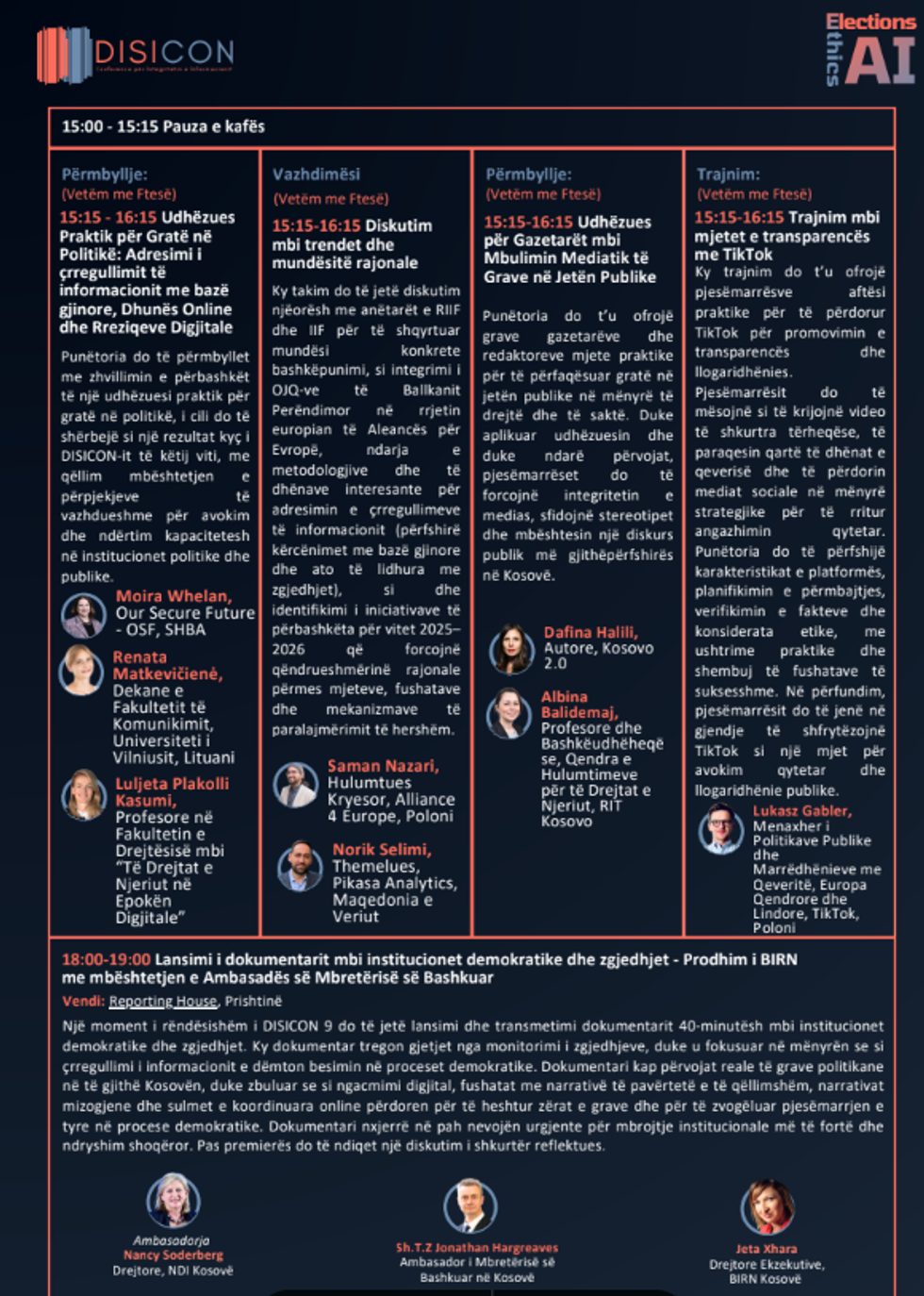 Përmes këtyre aktiviteteve, konferenca synon të nxisë bashkëpunimin rajonal, të forcojë qëndrueshmërinë digjitale dhe të promovojë një qasje etike dhe gjithëpërfshirëse për luftimin e çrregullimeve të informacionit dhe mbrojtjen e demokracisë në Ballkanin Perëndimor. /Telegrafi/