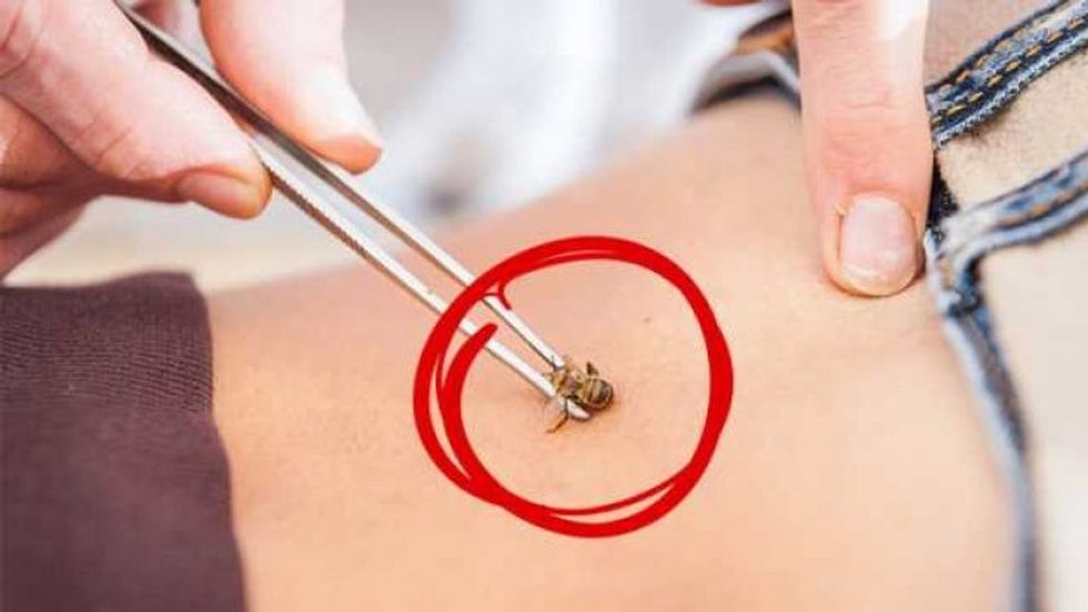 Hiqni thumbin (nëse është i pranishëm): Në rastin e bletës, thumba zakonisht mbetet në lëkurë. Përdorni një kartë plastike ose thonj për ta shtyrë me kujdes përjashta. Mos përdorni pincetë, sepse mund të shtrydhni më shumë helm në trup.