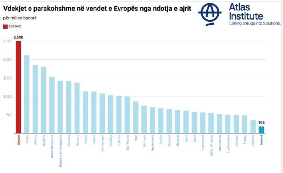 Instituti Atlas ka bërë të ditur se Kosova kryeson listën e vendeve evropiane me më shumë vdekje të parakohshme për milion banorë për shkak të ndotjes së ajrit.