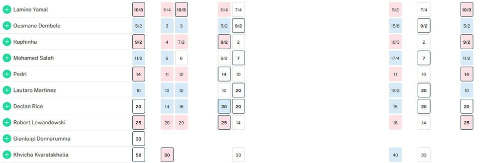 Sipas Odds Checker, Lamine Yamal i Barcelonës është favoriti për të fituar çmimin e madh individual, ndërsa Ousmane Dembele i PSG-së dhe Raphinha përbëjnë treshen e parë të favoritëve.