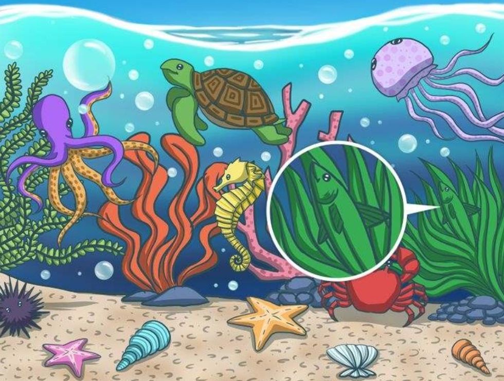 Në këtë imazh fshihet një peshk, mes "banorëve të tjerë të detit"