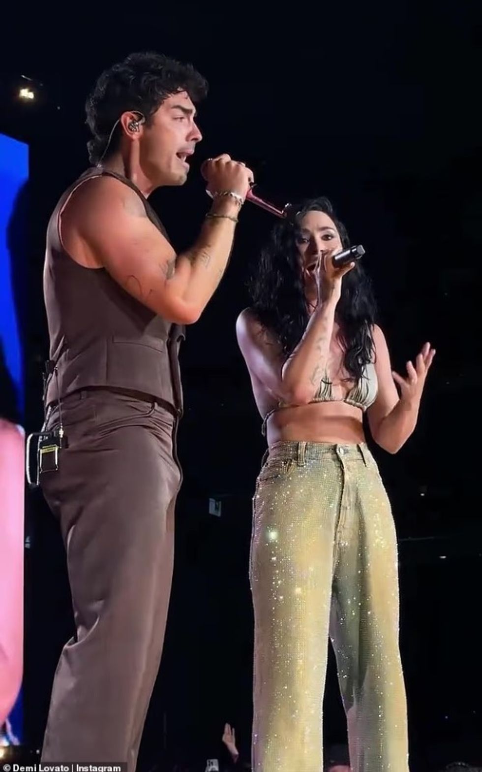 Në koncertin e vëllezërve Jonas të dielën në New Jersey, Demi Lovato u ngjit papritur në skenë për t’u bashkuar me Joe Jonas dhe vëllezërit e tij Kevin dhe Nick.