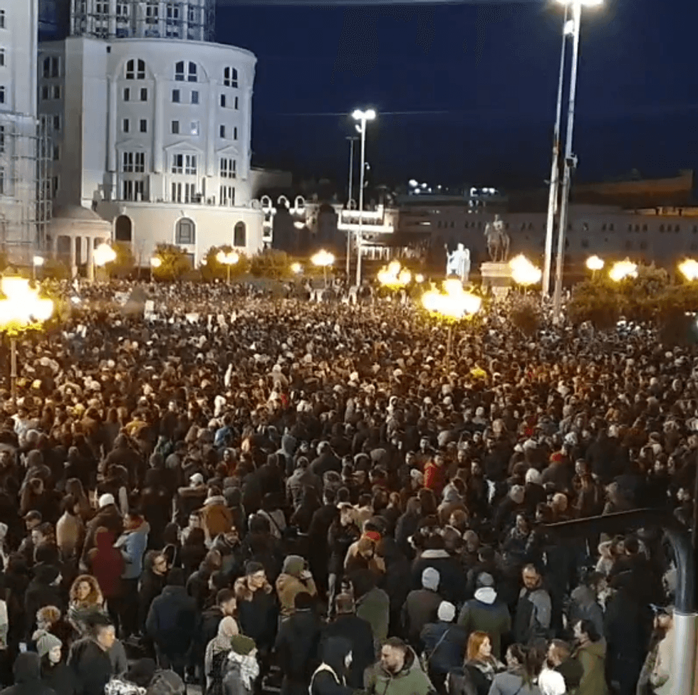 Në sheshin Maqedonia në qendër të Shkupit po mbahet një tubim qytetar në nderim të viktimave në Koçan.