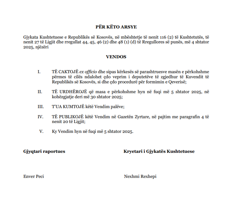 Nesër (30 shtator) skadon masa e përkohshme e vendosur nga Gjykata Kushtetuese e Kosovës, e cila ka ndaluar përkohësisht çdo veprim të deputetëve të zgjedhur të Kuvendit të Kosovës, si dhe çdo procedurë që lidhet me formimin e Qeverisë së re.