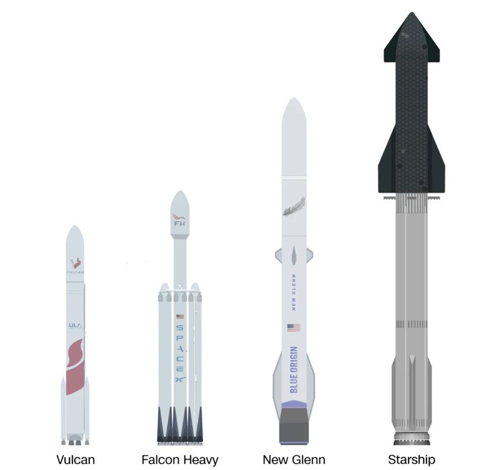 Për të ndihmuar në realizimin e këtij vizioni, SpaceX po zhvillon Starship, mjetin lëshues më të madh dhe më të fuqishëm të ndërtuar ndonjëherë. Raketa gati 121 metra e gjatë e bën xhuxh New Glenn-in në çdo kuptim: Musk ka thënë se shpreson që Starship të tërheqë deri në 300 tonë në orbitë.