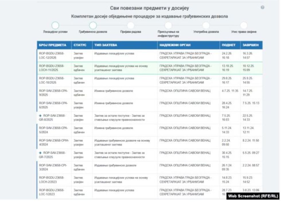 Radio Evropa e Lirë në Beograd ka analizuar Regjistrin Qendror të Procedurave të Bashkuara për dhënien e lejeve ndërtimore (CEOP).