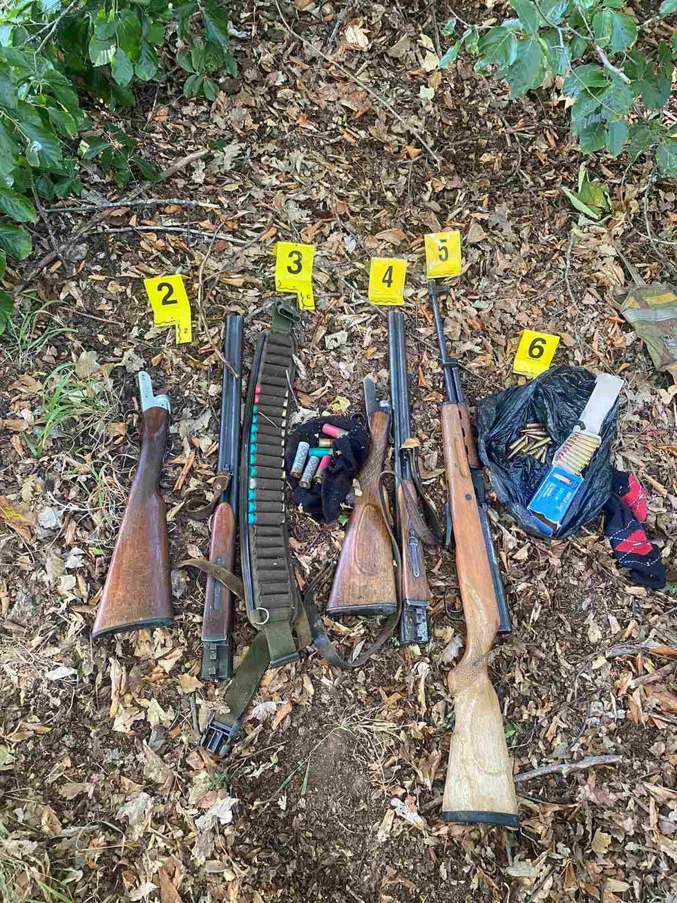Pas ndërhyrjes në terren dhe kontrollimit të zonës, policia ka gjetur tri armë të gjata, një pushkë gjysmë automatike dhe dy pushkë gjuetie të futura në një gyp metalik dhe të fshehura me kujdes në pyll, si dhe sasi municioni.