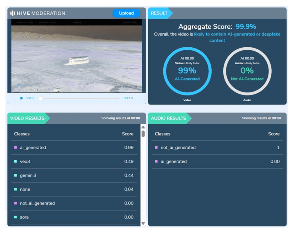 Por në rezultatin e përgjithshëm, platforma “Hive Moderation” ka përmendur platformat “Veo3” dhe “Gemini3”.