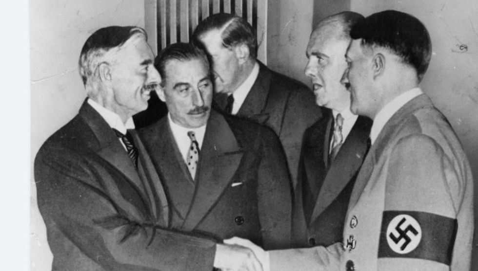 Atëherë, kryeministri britanik, Neville Chamberlain, së bashku me liderë francezë, nënshkroi një marrëveshje me Adolf Hitlerin, përmes së cilës Gjermanisë naziste i dorëzohej rajoni Sudet – një pjesë kyçe për Çekosllovakinë.