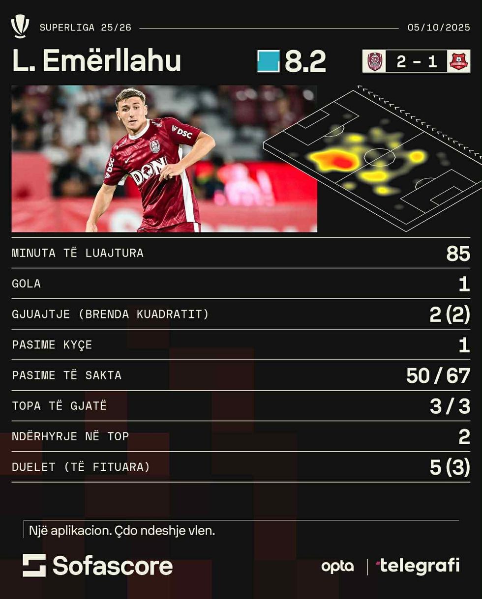 Mahnitës ishte edhe mesfushori i Clujit Lindon Emërllahu. Ish ylli i Ballkanit brenda 85 minutave, kompletoi 50 nga 67 pasime të mundshme si dhe realizoi një gol. Ai mori notën 8.2.