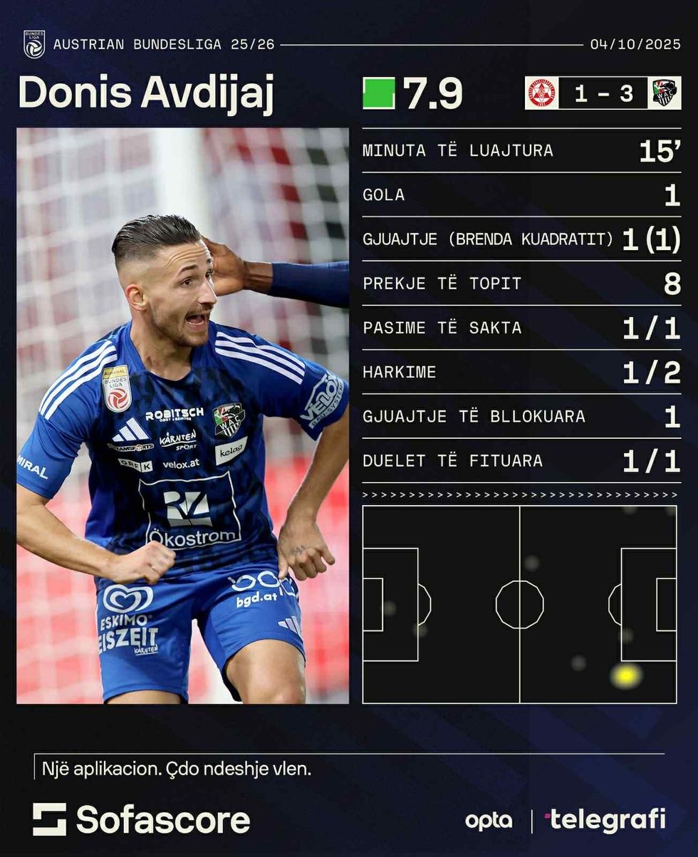 Tjetër lojtar me paraqitje të shkëlqyer ishte edhe sulmuesi Donis Avdijaj, që rigjeti “rrugën drejtë rrjetës”. Pas disa ndeshjeve pa gol, qendërsulmuesi realizoi pas vetëm 15 minutave lojë dhe u vlerësua me notën 7.9.
