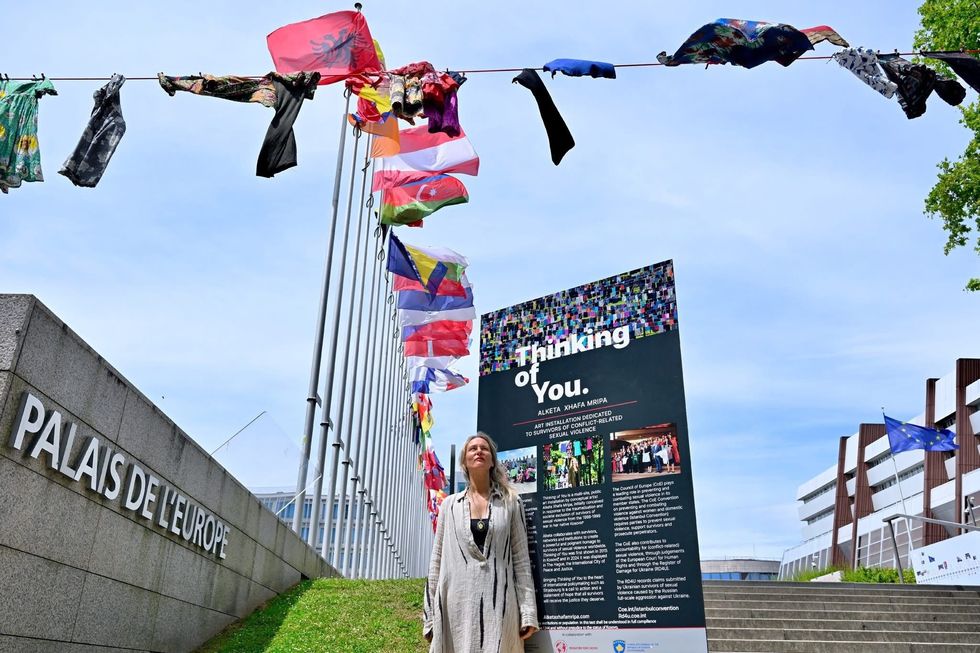 “Ajo që filloi në Prishtinë 10 vjet më parë — me 5,000 fustane të varura në të gjithë qytetin, secili prej të cilëve përfaqësonte një të mbijetuar të dhunës seksuale gjatë luftës, tani është shndërruar në një fushatë globale të udhëhequr nga Alketa Xh M. Ky instalacion i fuqishëm mbart me vete kujtesën, rezistencën dhe të vërtetën e të mbijetuarve, në zemër të Evropës, në qendër të drejtësisë”, shkruan ajo në Facebook.