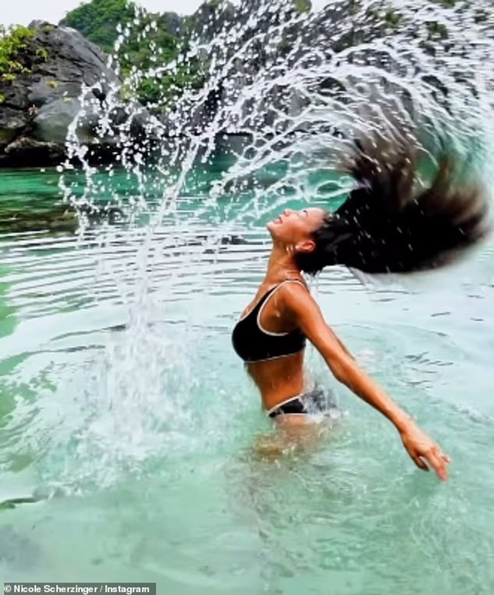 Nicole Scherzinger shfaq figurën e saj të jashtëzakonshme të trupit me bikini të zeza, ndërsa argëtohet në det gjatë udhëtimit në Filipine