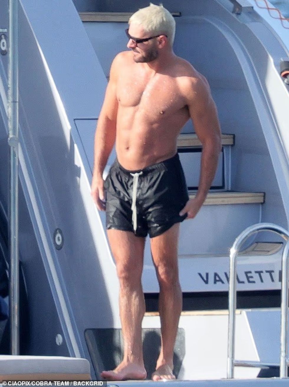 Zac ndërkohë mbante veshur pantallona jeshile ulliri dhe një këmishë të bardhë të lirshme, duke kompletuar pamjen me syze dielli dhe një kapele bejsbolli.