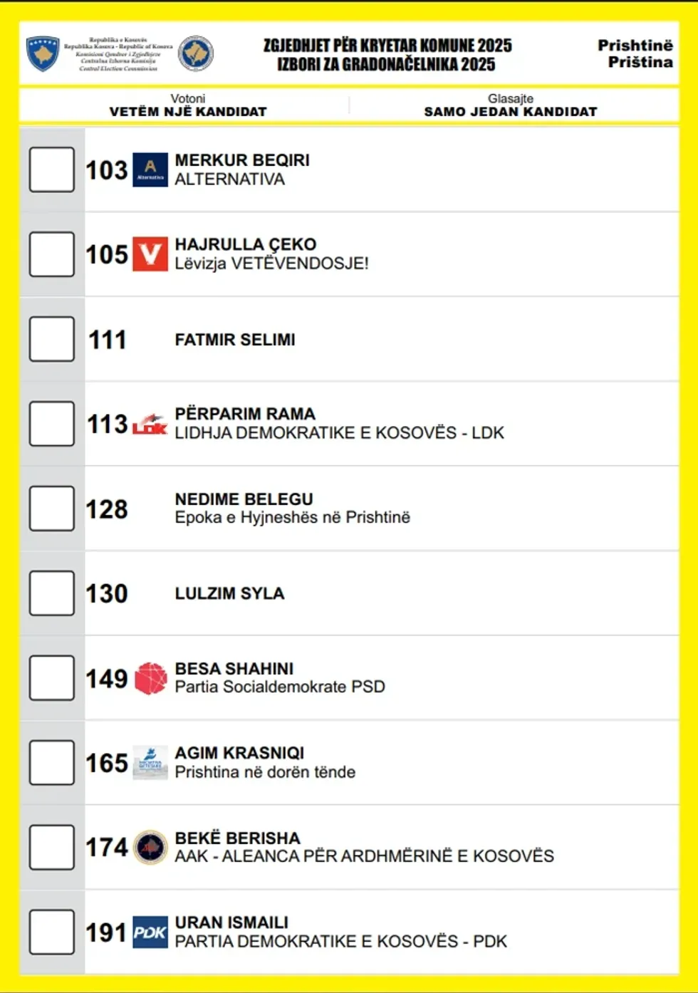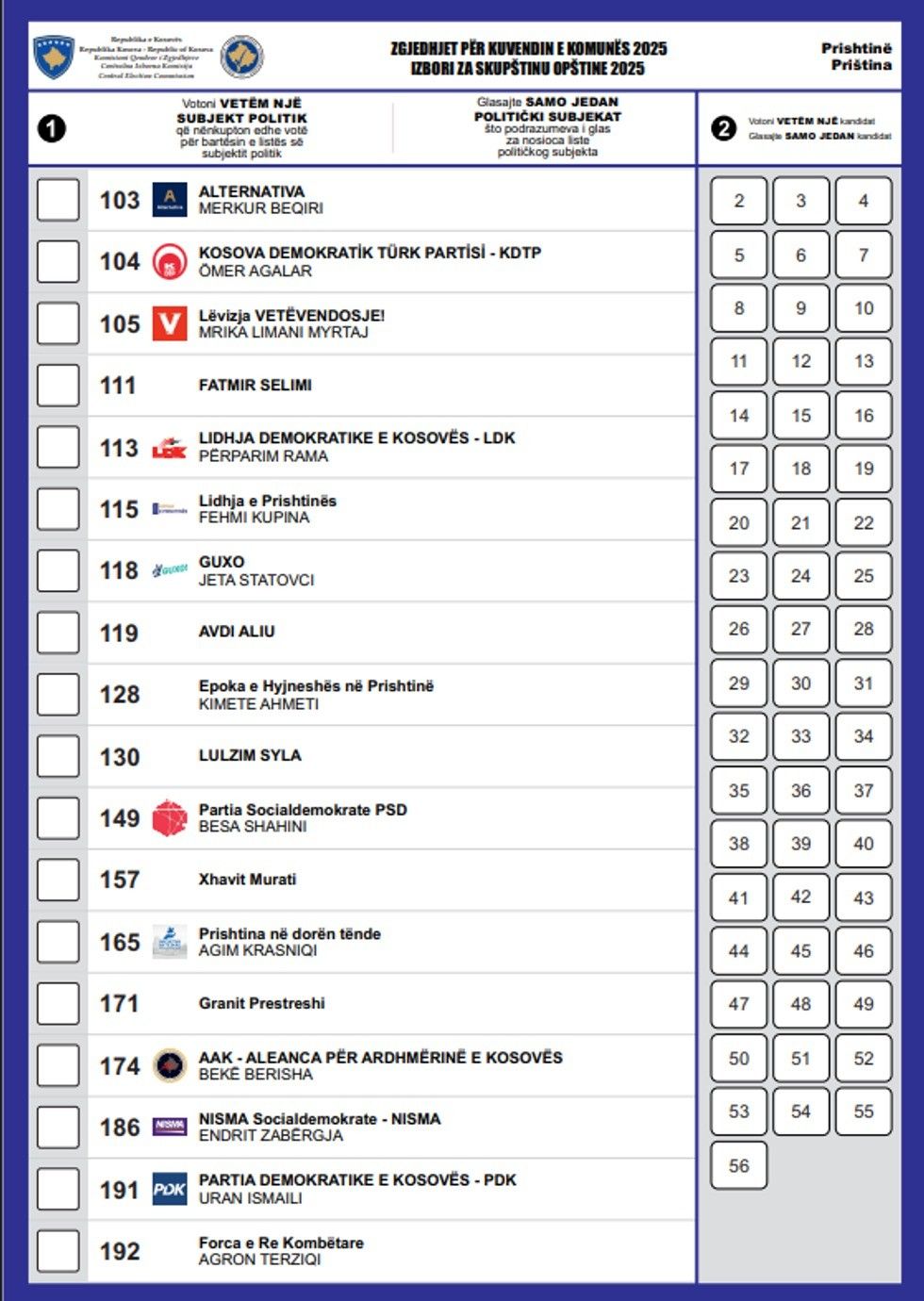 Do të jenë dy fletëvotime, njëra për zgjedhjen e kryetarit të Komunës dhe tjetra për zgjedhjen e anëtarëve të Kuvendeve Komunale.