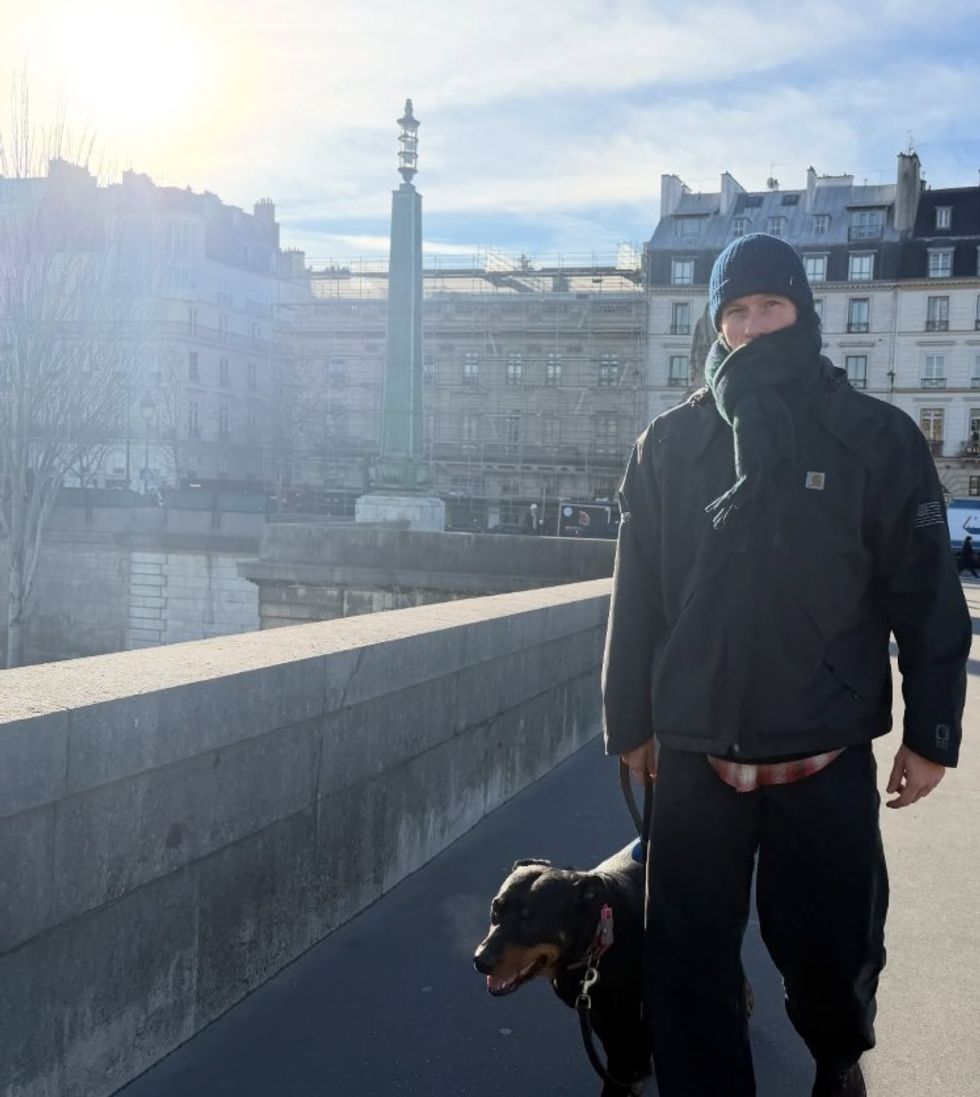 Në fotografitë e publikuara, Dua shfaqet me veshje elegante dhe të thjeshta, ndërsa Callum shihet duke shëtitur një qen në rrugët e Parisit, i veshur ngrohtë për motin e ftohtë.