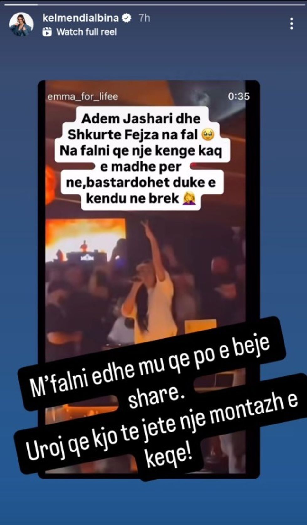 Albina, e tronditur nga ajo që pa, ripostoi videon në rrjetet e saj sociale, duke shprehur haptazi indinjatën: “M’falni edhe mu që po e bëj share. Uroj që kjo të jetë një montazh i keq!”